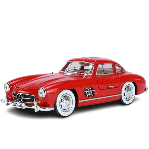 Prezentowany model to klasyczny Mercedes-Benz 300SL z charakterystycznymi drzwiami typu „skrzydła mewy”, wiernie odwzorowany w skali 1:24. Ten legendarny samochód sportowy z lat 50. XX wieku to ikona stylu i inżynierii, która teraz dostępna jest w formie precyzyjnie wykonanego modelu do zabawy lub kolekcji.